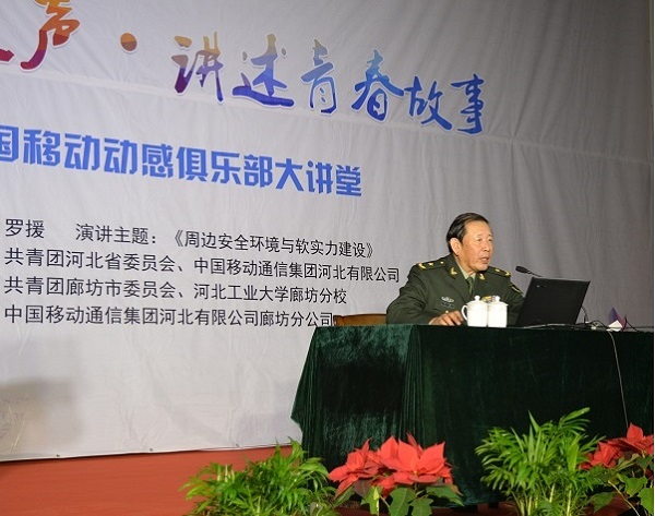 2017年3月27日,我國著名的國際戰略學、國家安全學專家、第十一屆全國政協委員、中國戰略文化促進會常務副會長兼副秘書長、軍事科學院世界軍事研究部原副部長、博士生導師羅援少將受邀做客河北工業大學廊坊分校,為師生代表作題為《周邊安全環境與軟實力建設》的專題講座。700多名師生前來聆聽講座,講座由廊坊分校黨委書記任濤主持。