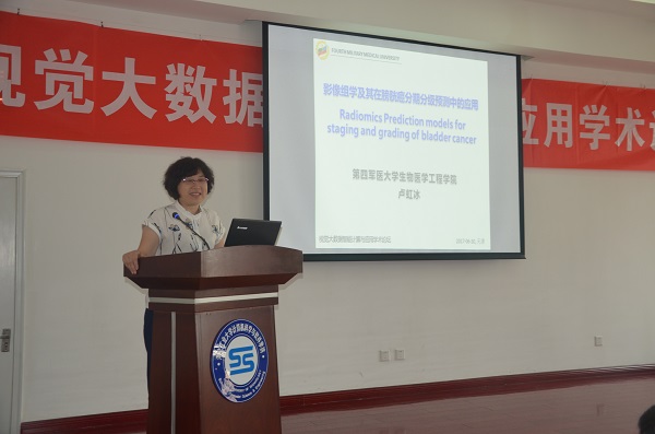 開篇是由第四軍醫大學盧虹冰教授做了題為“Radiomic prediction model for muscle invasiveness and grading of bladder cancer”的報告。報告介紹了醫學影像組學(Radiomic)的內涵和發展歷史,指出醫學影像組學是視覺大數據在醫學診斷中的重要應用,并以膀胱癌的分級診療為例,介紹了基于影像組學的主要任務和相關成果,包括膀胱內外壁的分割方法,腫瘤區域特征提取方法,多模態影像融合方法和基于SVM等的分類方法,并講解了基于醫學影像組學的癌癥輔助診斷,指出基于影像組學和深度學習的人工智能系統對提高診斷效率,減輕醫生負擔,造福病患具有重大的科學意義和臨床價值。